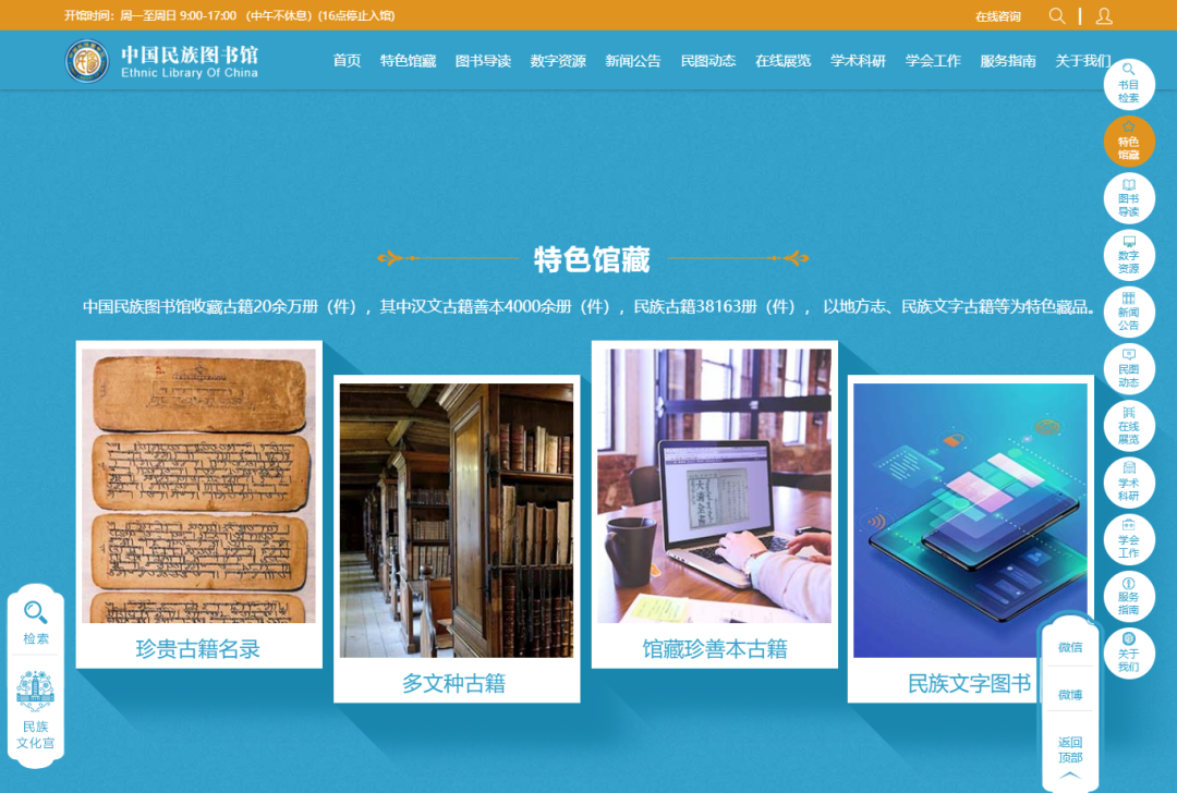 新版网站对图书馆已有的数字资源进行了有效整合,读者可通过网站的统一入口,有效访问本地和在线资源。中国民族图书馆今后还将根据读者研究需要,不断建设和拓展优势数字资源。