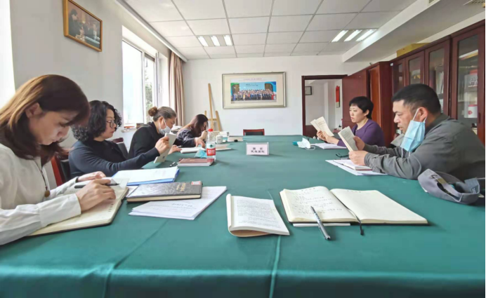 4月26日上午,信息中心-画院党支部画院党小组组织全体党员和职工学习《毛泽东邓小平江泽民胡锦涛关于中国共产党历史论述摘编》。党小组组长史建红主持学习。