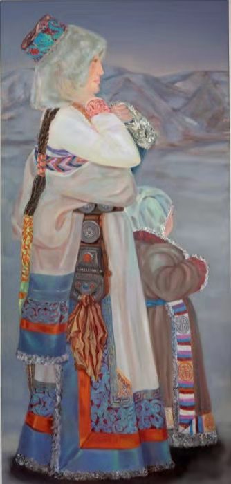 由中国少数民族美术促进会主办,中国艺术研究院油画院学术支持的“民族百花——庆祝中国共产党成立100周年油画精品展”于2021年6月27日至7月9日在中国艺术研究院油画院北京云上美术馆展出。民族文化宫民族画院(国家民族画院)刘艳华的作品《母与子》入选此次展览。《母与子》描绘了藏族母亲与孩子相互依偎看向远方的画面。母亲用平和的眼神眺望天际,沉稳大气、神秘平静,呈现了高原妇女淳朴、坚韧之美;灰色调营造出悠远、温暖的视觉感受,表达了作者对家园和孩子的深厚情感以及对美好未来的希望和信心。