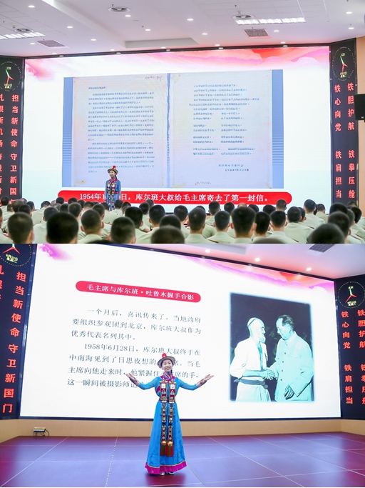 为庆祝中国共产党成立100周年,深入开展党史学习教育,北京市文化和旅游局组织开展了“百名红色讲解员讲百年党史”宣讲活动,宣讲团成员由北京市6家单位的9名优秀讲解员组成。6月18日,首场宣讲在北京市文旅局举行。此后,宣讲团先后赴北京市武警驻京部队、北京经济管理职业学院等地开展了四场宣讲活动。民族文化宫博物馆裕固族宣讲员郭一梅以馆藏文物“新疆维吾尔族农民库尔班·吐鲁木给毛主席的信”为宣讲内容,通过一封封纸短情长的书信,讲述了曾经家喻户晓的“库尔班大叔骑着毛驴上北京”的故事,叙说了库尔班大叔的后人对党的感恩之情,通过几代人的赴京之路,体现了党的光辉照边疆、边疆人民心向党。