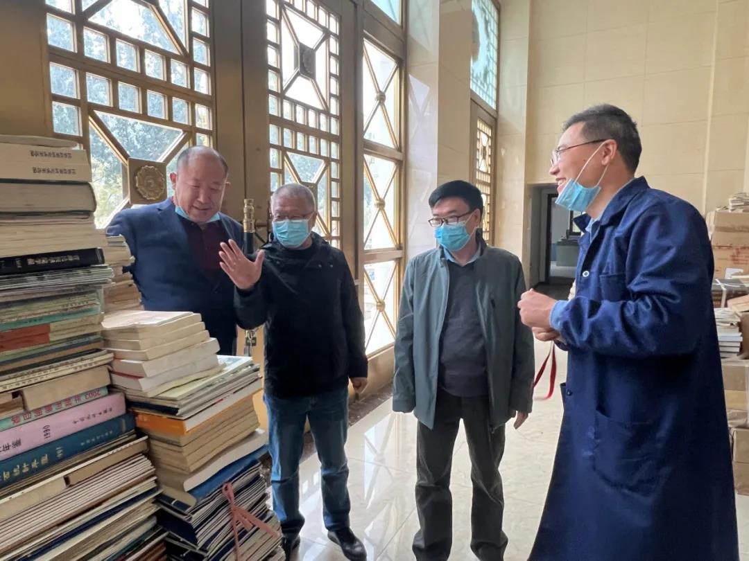 11月5日,民族文化宫党委副书记钟兴奎,党委委员、副主任张树泉到图书馆调研文献整理工作,在图书馆馆长陈烨陪同下,深入了解了西配楼暂存文献及地下书库的具体情况。